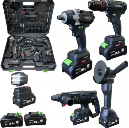 Акумулаторен комплект 5в1 , гайковерт , винтоверт , ъглошлайф , перфоратор , LED лампа - 36v 10.0A STAHLMAYER BLACK PRO