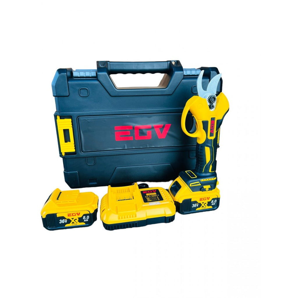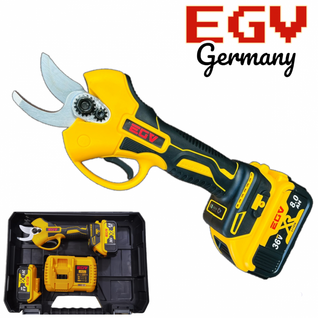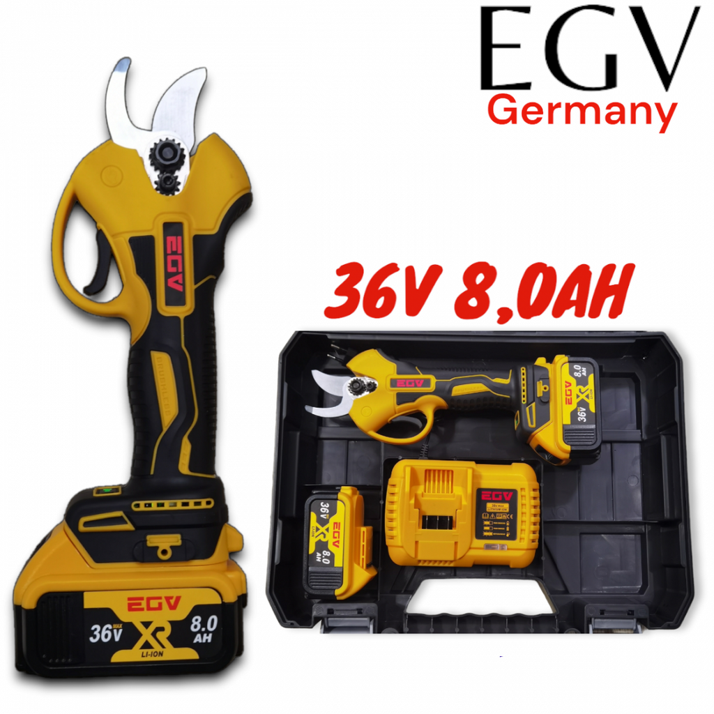 Ножицата на батерия EGV – Pro е чудесен иснтрумент за резитба на лози и дръвчаета или просто профилактично рязане на клони на храсти в градината. Не на последно място трябва да споменем, че тя идва при вас в комплетк с 2 батерии и зарядно устройство и всички това на доста атактивна цена. Всичко това превърна този уред в абсолютен хит в гамата на овощаро-лозарски ножици на батерии . Тази ножица е част от PRO серията акумулаторни лозарски ножици с високо качество на атрактивна цена.