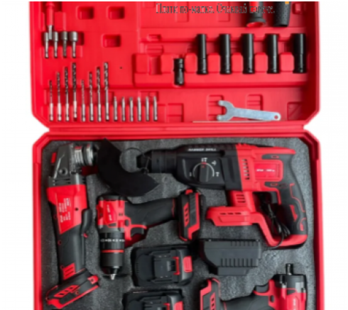 Акумулаторен перфоратор, ъглошлайф 125ММ, гайковерт и винтоверт 18V с 3 бр. батерии 5AH в куфар и зарядно