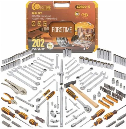 Професионален комплект вложки и битове 202 части FORSTIME – Хром Ванадий | Надеждност и качество