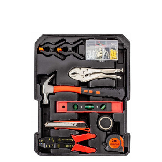 Сред инструментите ще откриете отвертки, френски ключове, клещи, макетни ножове, шестограни и много други, разпределени на четири нива, както следва: