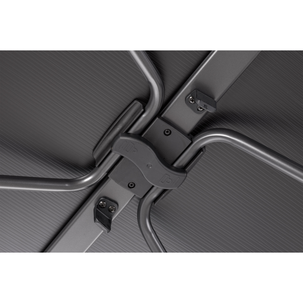XXL маса с изключително лека, здрава и стабилна конструкция. Проектирана за използване при по-дълги пътувания и в ситуации, където се изисква възможно най-висок комфорт. Размерите и височината ѝ позволяват удобно хранене за четирима души. Четири телескопични крака са снабдени с въртящи се крачета против потъване и с проста, бърза и надеждна система за заключване при настройка и сгъване. Здравата плот на масата е лесен за почистване и високо устойчив на дъжд и неблагоприятни условия. В комплект с издръжлива чанта за носене с дръжки.