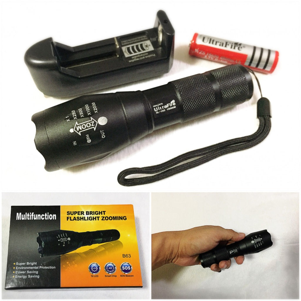 Фенер POLICE CREE T6 със зуум 250000 W - 1000 lm (лумена) в комплект с тактически спусък за фенер