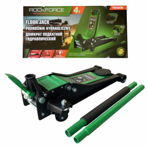 Професионален сервизен крик на марката ROCKFORCE с товароподемност 4 тона, с две помпи и усилена конструкция. Крикът е снабден с педал за бързо повдигане.