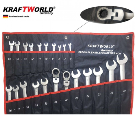 ПЪЛЕН КОМПЛЕКТ Немски Тресчотни ключове 22ч 6-32мм с чупещо рамо