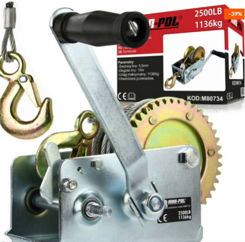 Ръчна Лебедка 2500 либри с въже 1130кг