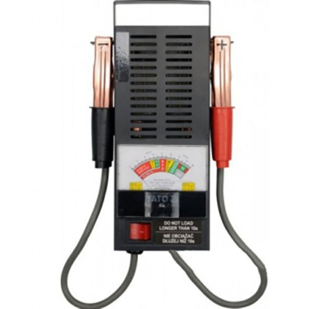 Tоварна вилка за тестване на акумулаторни батерии - 6V и 12 VDC, с максимален ток до 100 A. Служи за тестване под товар на оловно-киселинни стартерни батерии за леки и товарни автомобили.
