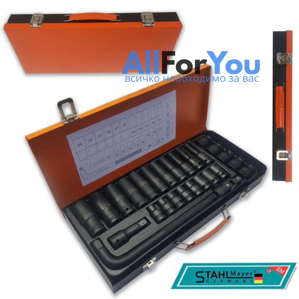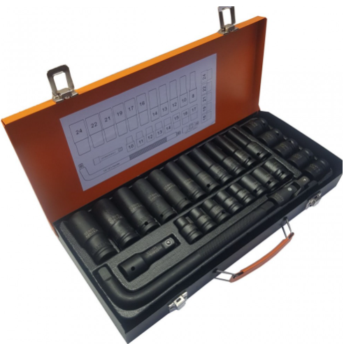 Комплект с ударни вложки 27 части 1/2''CR-V в метален куфар