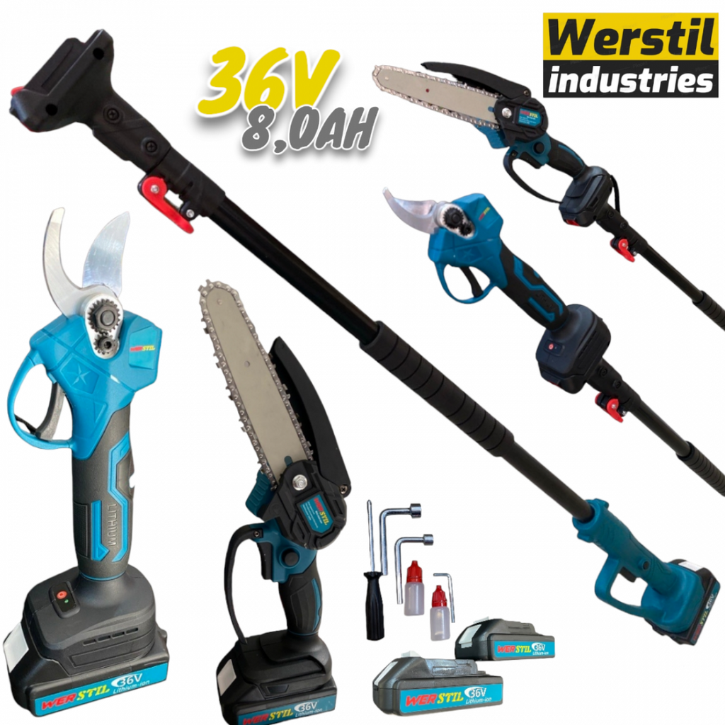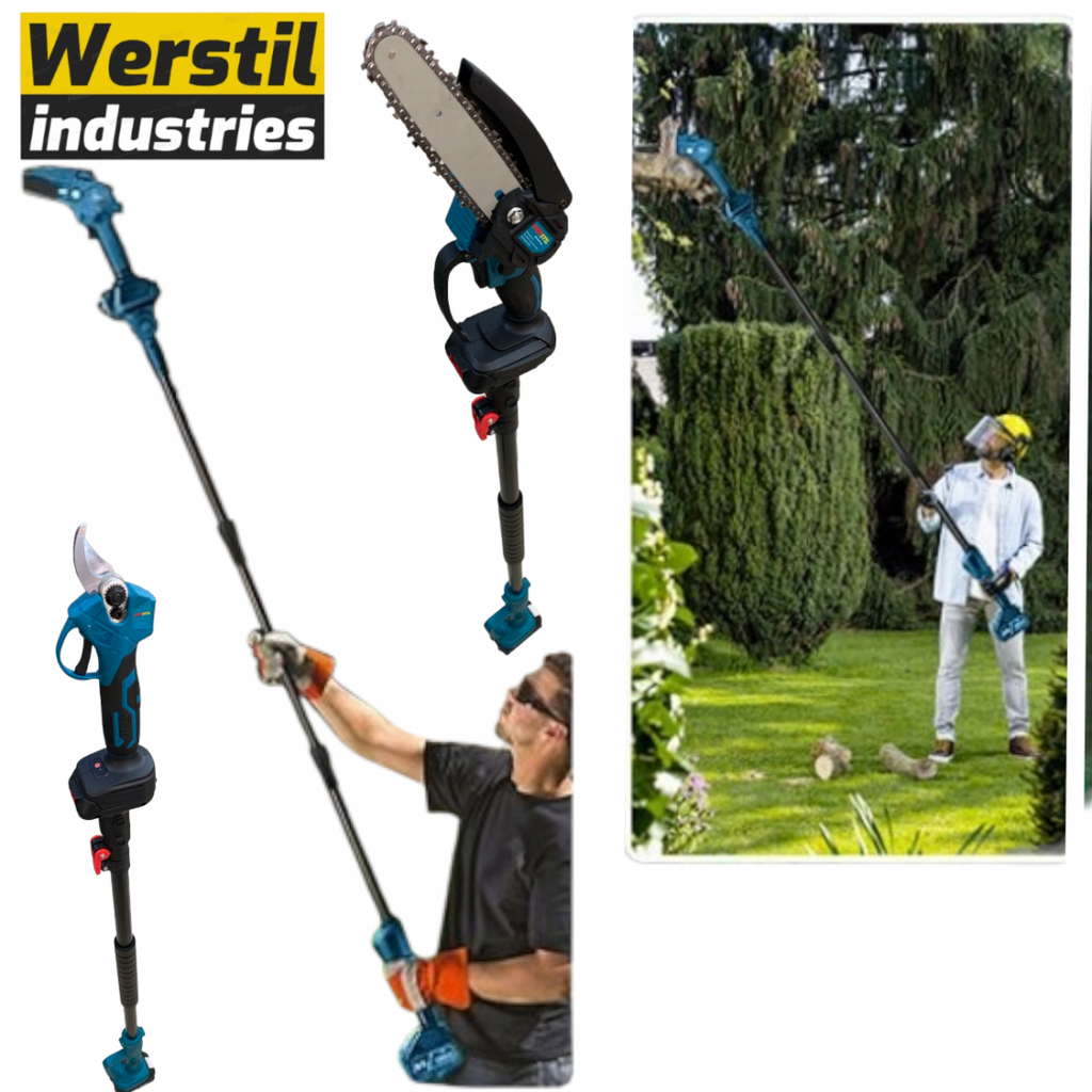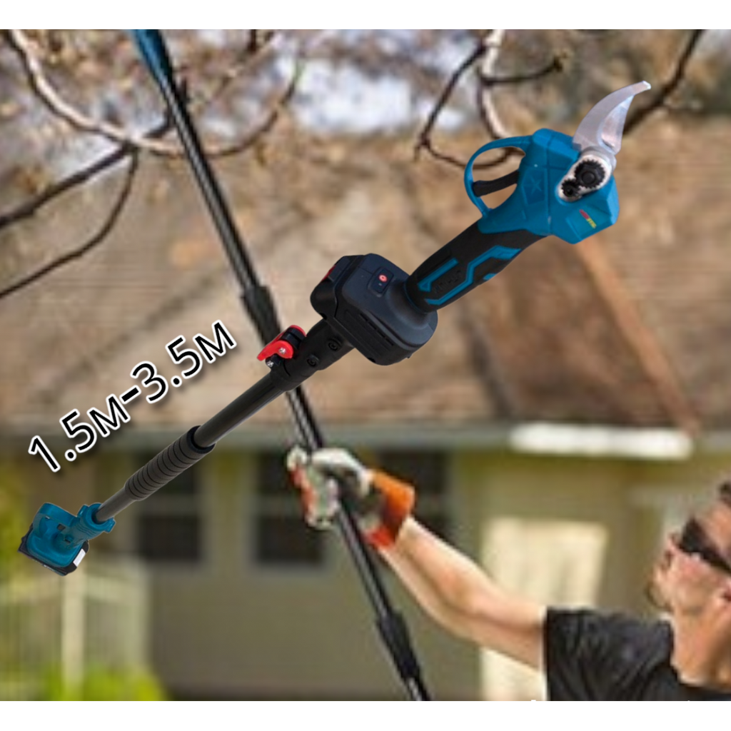 Телескопичен прът за акумулаторен трион за клони e с голям диапазон приложение в овощарство и градинарство. Дължината на пръта е с диапазон 1.2- 2 метра с е напълно универсален. Подходяща е за поддръжка на всякакви видове овощни дървета, за окастряне на клони на трудни за достигане места. В долната част на дръжката има превключвател за захранване.