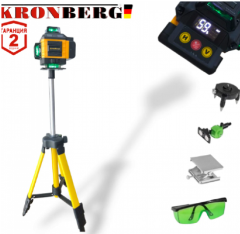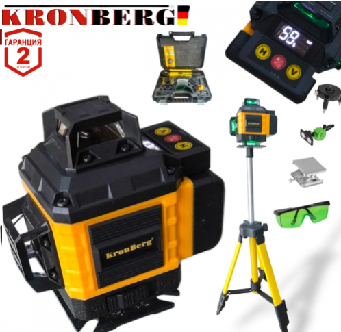4D ЛАЗЕРЕН НИВЕЛИР с 16 линии (четири точков) самонивилиращ се, със зелен лазер 4 равнини (4 лазера) KRONBERG