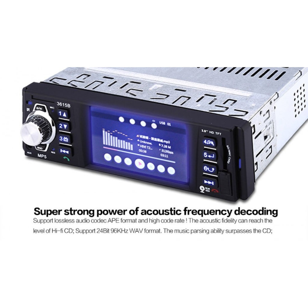 Авто MP5 плеъра има 3,9-инчов (800x480px) цветен LCD дисплей, който ви дава информация за различните начини, по които може да работи: Режим FM радио, Режим мултимедия (USB или SD), AUX режим, Bluetooth режим.