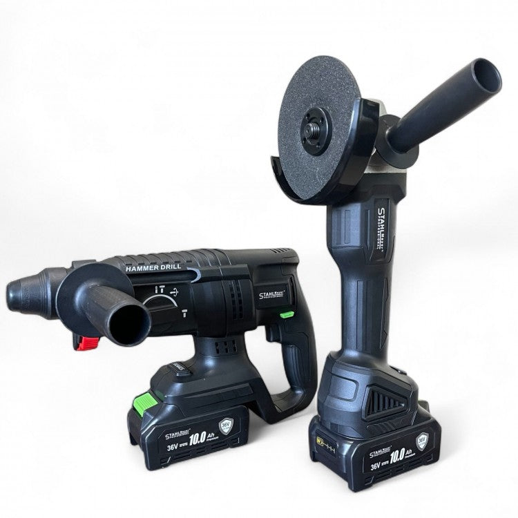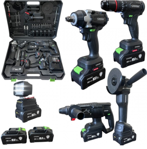 Акумулаторен комплект 5в1 , гайковерт , винтоверт , ъглошлайф , перфоратор , LED лампа - 36v 10.0A STAHLMAYER BLACK PRO