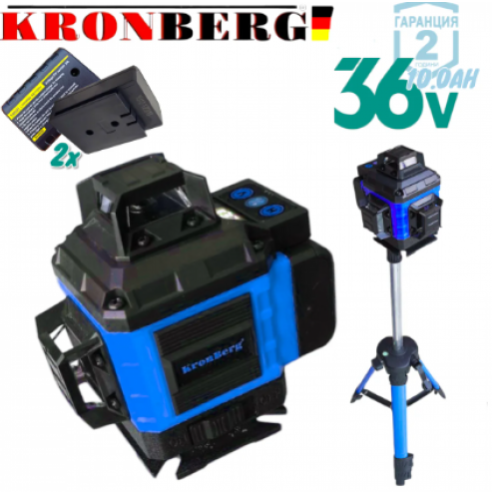 4Д ЛАЗЕРЕН НИВЕЛИР с 16 линии (четири точков) самонивилиращ се, със зелен лазер 4 равнини (4 лазера) + 2 батерии