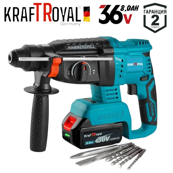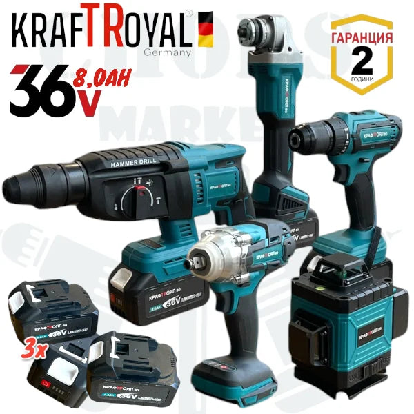 Акумулаторен Перфоратор Акумулаторен Ъглошлайф 125мм Акумулаторен Гайковерт/Импакт Акумулаторен Винтоверт 36V Акумулаторен 4Д Лазерен Нивелир 36V 8,0AH с 3 броя батерии и зарядно в куфар