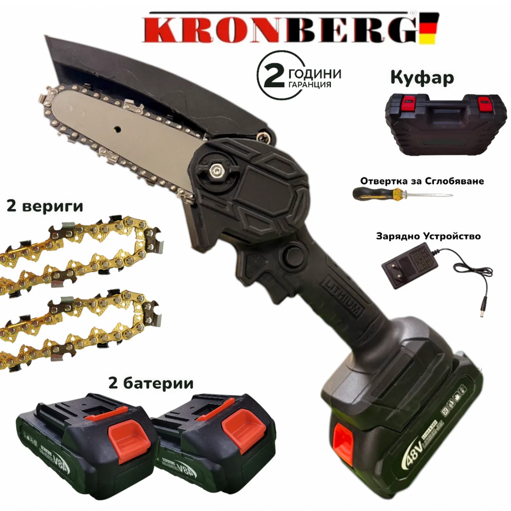 Акумулаторна Резачка за Клони Безчеткова 48V 6AH KRONBERG 2 Батерии 2 Вериги ПРОМОЦИЯ