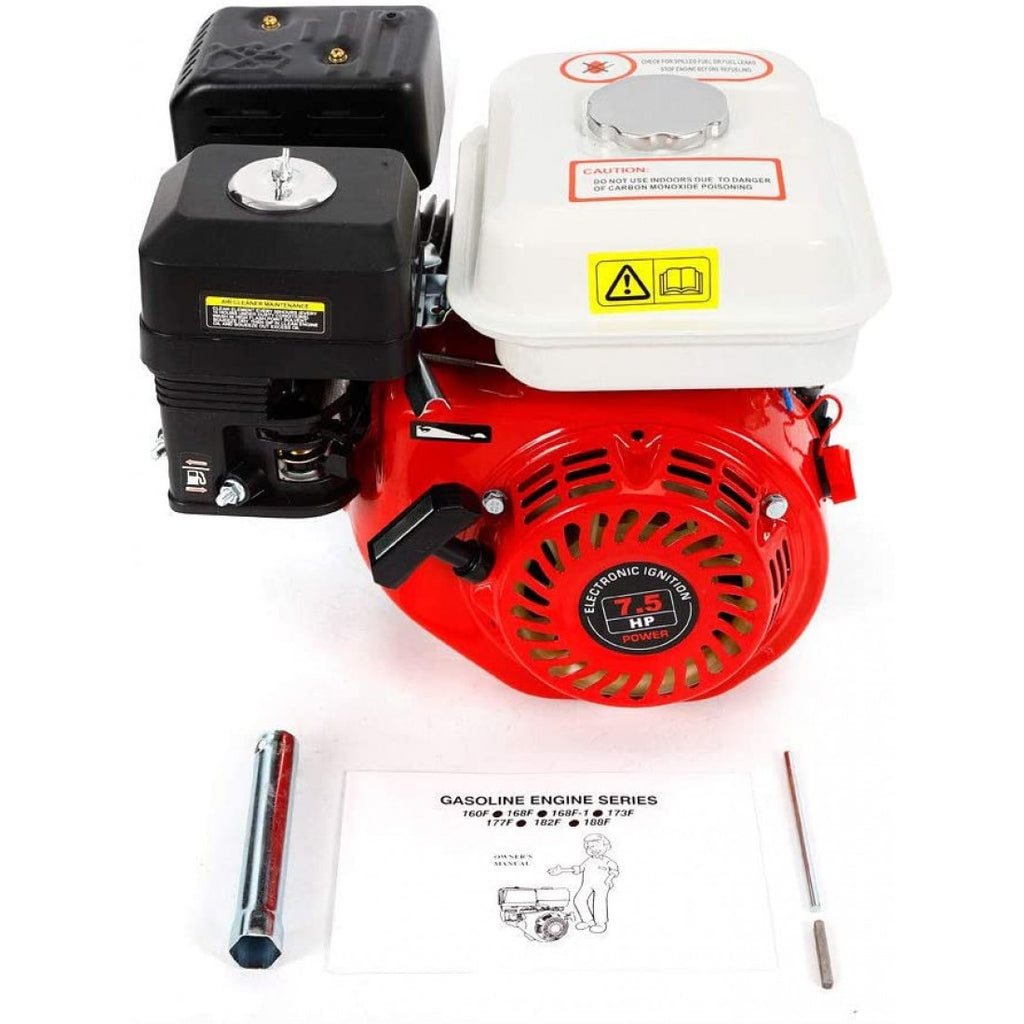 Четиритактов бензинов двигател 7.5 Hp с въздушно охлаждане, предназначен за прикачване към мотофрези, мотокултиватори, мотоблокове, водни помпи, генератори за ток и др. техника. Датчик за маслото - двигателя изгася при ниско ниво.