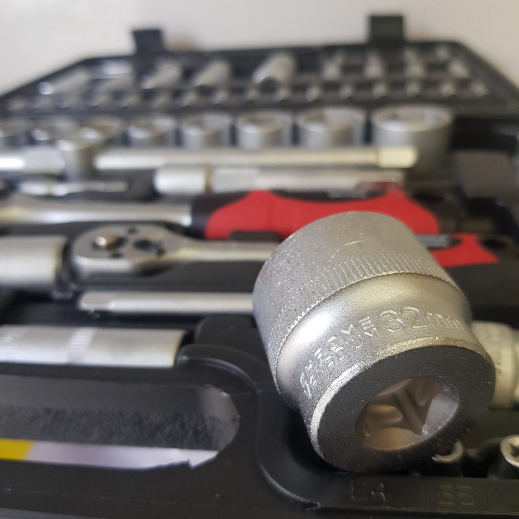 - 17 броя вложки  1/2'' къси: 10мм; 11мм; 12мм; 13мм; 14мм; 15мм; 16мм; 17мм; 18мм; 19мм; 20мм; 21мм; 22мм; 24мм; 27мм; 30мм; 32мм;