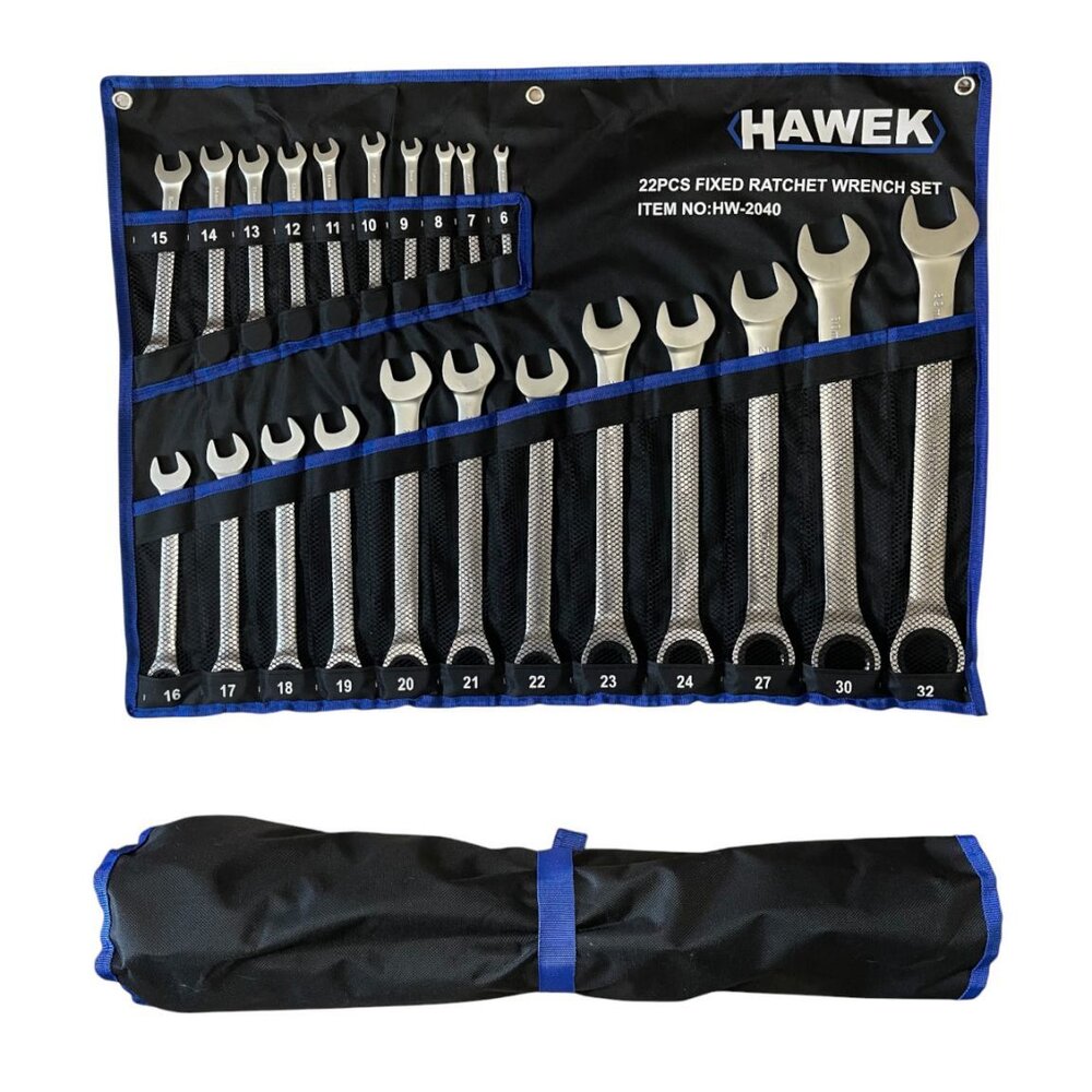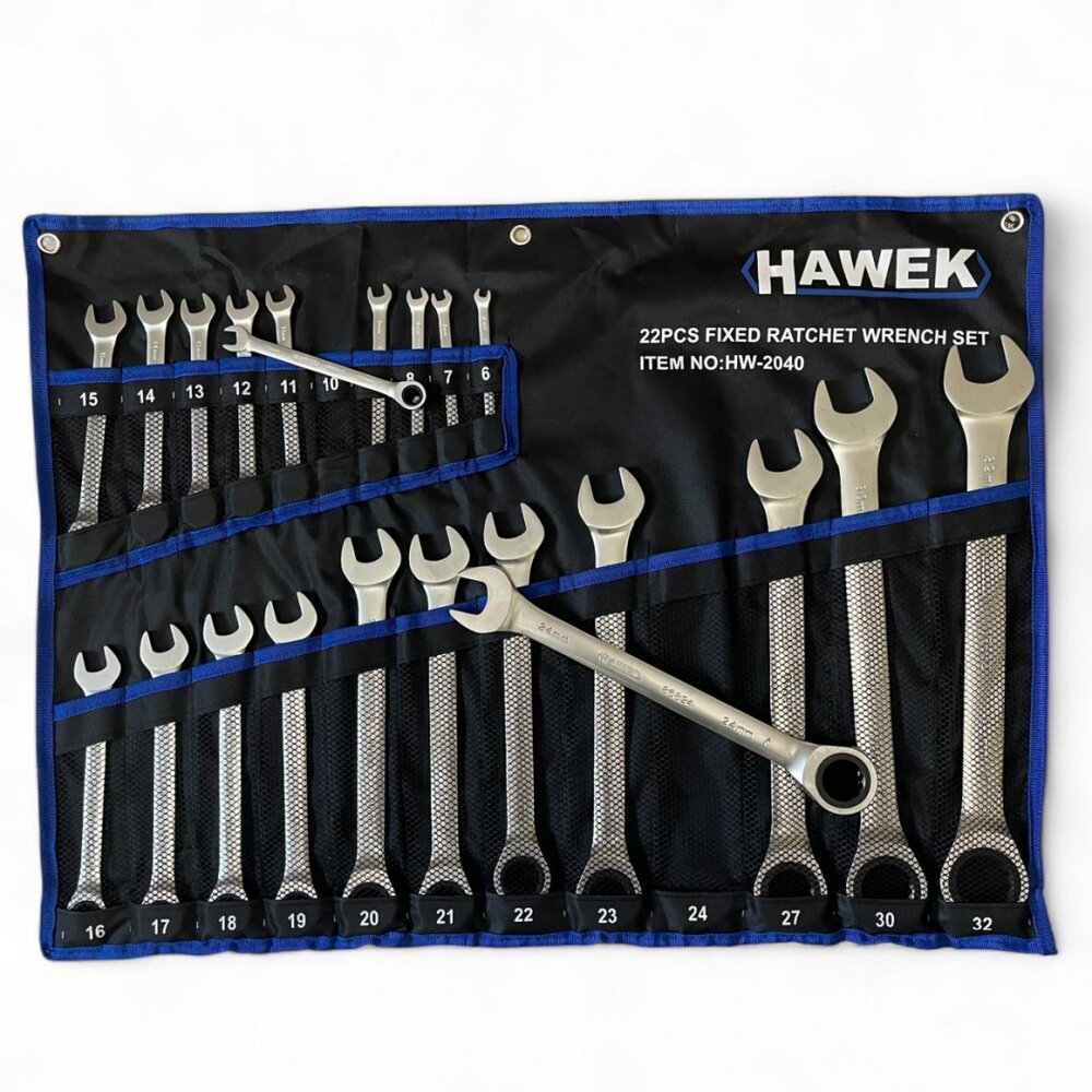 Комплект звездогаечни тресчотни ключове 6 - 32 мм 22 части HAWEK