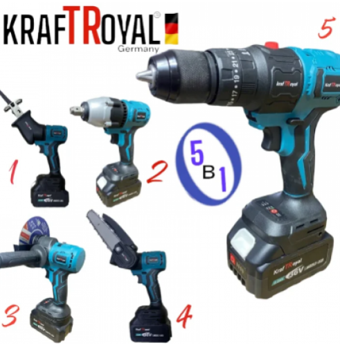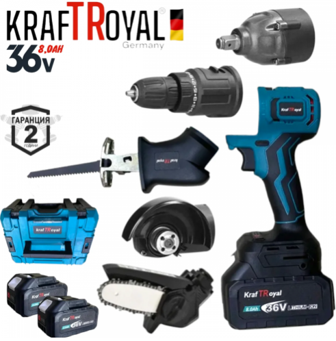 5в1 Мултифункционален Акумулаторен Инструмент 5 Глави 36V 8,0AH KRAFT ROYAL ВинтовертГайковерт Саблен Трион Резачка за Клони и Ъглошлайф