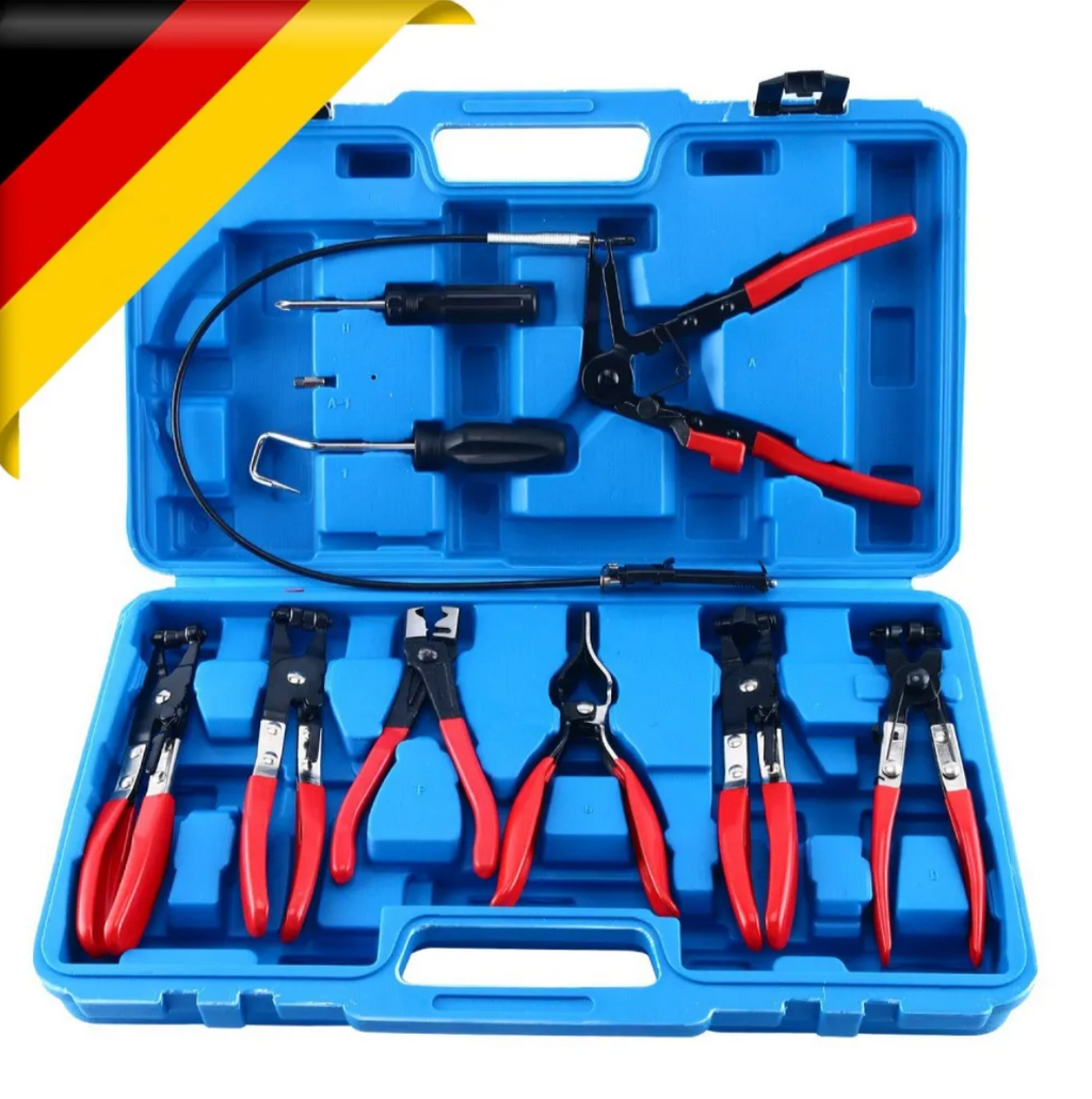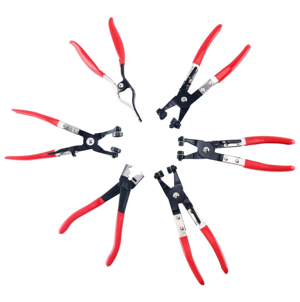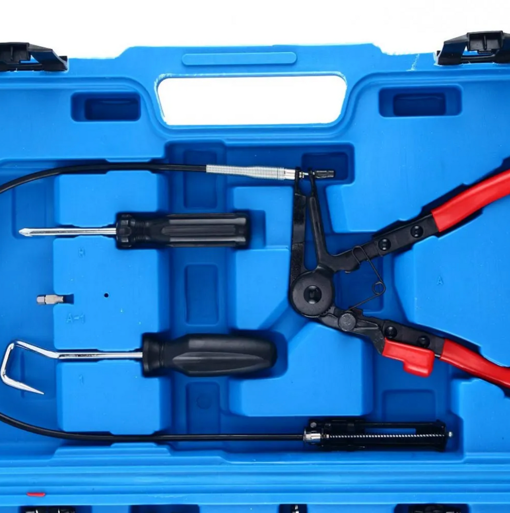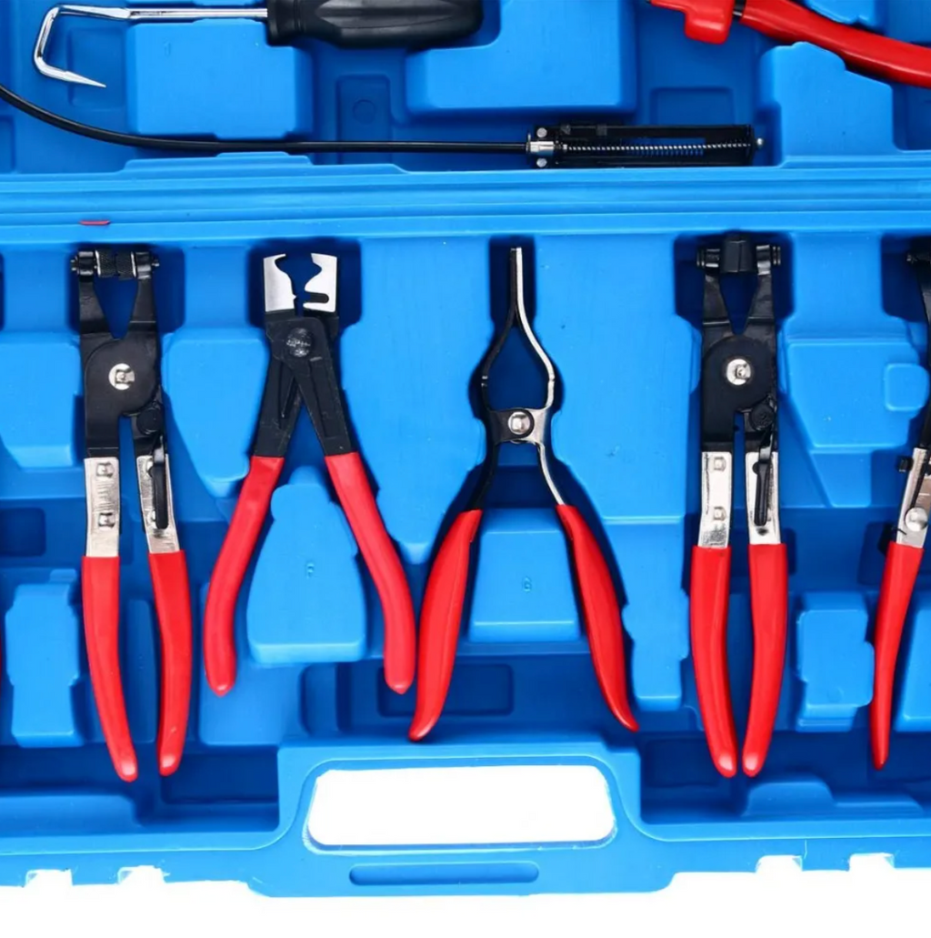 Този комплект от клещи за скоби на водни съединения има общо 7 броя клещи, които предоставят допълнителен достъп и заключване на скобите в отворено положение.