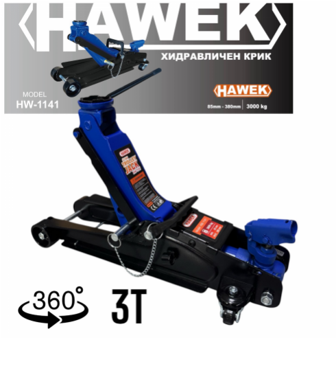 НИСКОПРОФИЛЕН КРИК КРОКОДИЛ 3 ТОНА 85 – 380 ММ С ВЪРТЯЩА ДРЪЖКА И ЗАЩИТА HAWEK , HW-1141