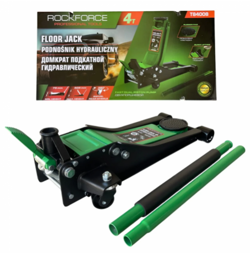 Професионален сервизен крик на марката ROCKFORCE с товароподемност 4 тона, с две помпи и усилена конструкция. Крикът е снабден с педал за бързо повдигане.