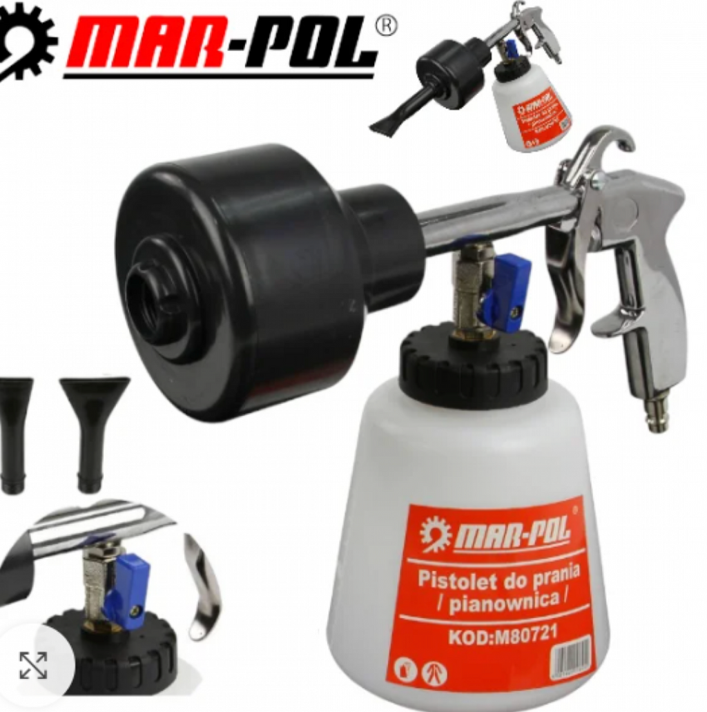 Пистолет за пране и измиване Торнадор 2 MAR-POL е изключително подходящ за почистване на силно замърсени повърхности, които изискват продължително излагане на почистващи препарати. Идеален е за измиване на леки автомобили, хладилни бусове, ремаркета на камиони и много други. Пистолетът е оборудван с дюзи, които позволяват равномерно разпределение на пяната върху почистваните повърхности. Освен това уредът е снабден с тесен накрайник, който позволява да се използва между седалки, на пода и други места, където е необходимо голямо количество пяна. Съотношението на смесване препарат / вода може да бъде различно, в зависимост от мястото и степента на замърсяване.