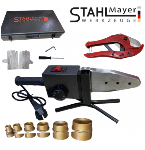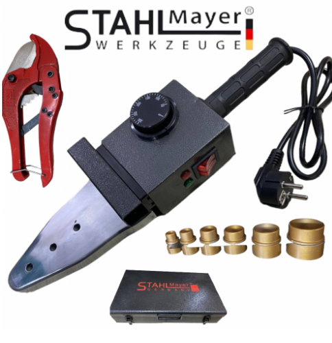 Заваръчен комплект за полипропилен KraftRoyal 2500W  за запояване на полипропиленови тръби и фитинги. Работи от 50 - 300 градуса.Регулацията на температурата е електронна.