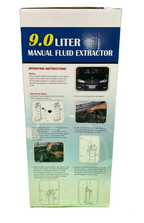 С негова помощ, много лесно можете да изпомпате маслото от двигателя или охладителната течност, а 9-те литра съвместимост на съда би трябвало да са достатъчни за всяка течност от автомобила.