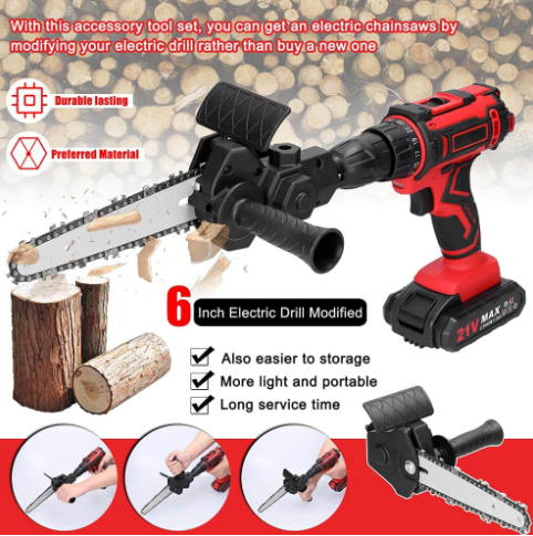 Улесни си работата и закупи своята приставка , която ще ти спести време, пари и нерви.Универсална Приставка за Винтоверт е инструмент,който позволява да използвате вашия винтоверт и като резачка. Това ви позволява да превключвате за секунди между винтоверт и резачка. С този преобразувател дори не е необходимо да купувате верижен трион,а просто може да отделите малко време,за да модифицирате своят винтоверт, спестявайки пари и време. В сравнение с традиционните електрически верижни триони, този моторен